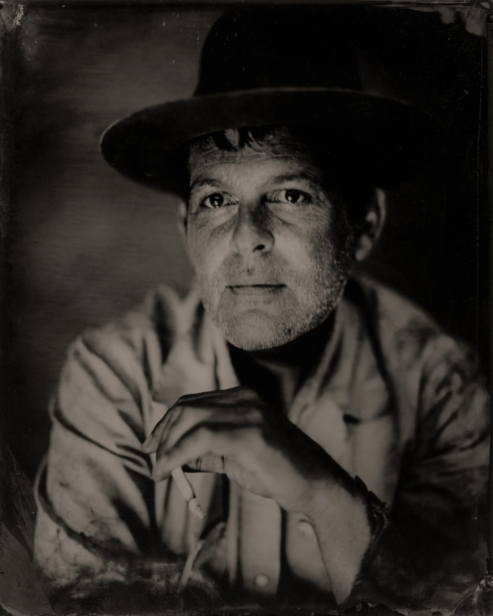 Figures of the West presents contemporary artists, musicians, writers, and cultural figures whose work continues to shape the American West. Using the nineteenth-century wet plate collodion process, these portraits place living subjects within a visual language historically associated with the early photographic record of the frontier. Photographed within the same landscapes that inform my broader work, the images explore how identity, place, and cultural memory intersect, suggesting that the story of the West is not fixed in history but continually reshaped by those who interpret and inhabit it.